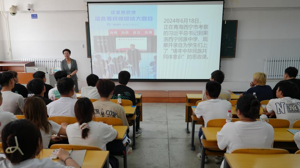 为深入贯彻习近平总书记关于学校思政课建设的重要指示精神,落实全省学校铸牢中华民族共同体意识教育工作推进会议精神,扎实推进党纪学习教育走深走实,切实提升学校思政课凝心铸魂育人实效,6月21日,校党委书记何晓杰在教学楼301教室以《铸牢中华民族共同体意识》为主题为23级学生讲授了一堂生动的思政课。