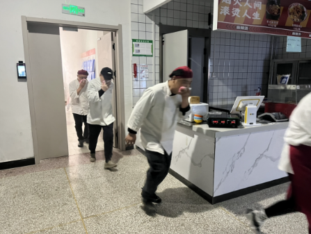 开展消防逃生演练。通过模拟火灾发生场景、初起火灾扑救、启动紧急疏散预案及组织人员疏散逃离等,讲授正确使用灭火器材和灭火方式,邀请师生们亲身体验,让师生们在身临其境的体验中掌握了正确的自救方法。
