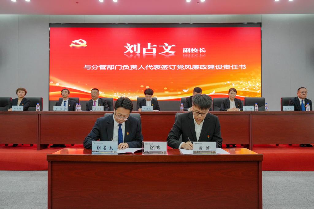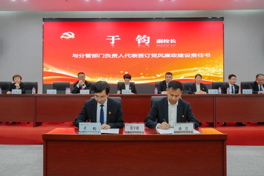 党委书记何晓杰分别与学校领导班子成员代表、基层党组织书记代表签订了党风廉政建设责任书。副校长于钧、刘占文分别与分管部门代表签订党风廉政建设责任书。
